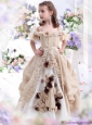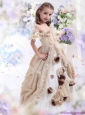 Home >  Special Occasion Dresses >  Little Girl Pageant Dresses > Champagne Spaghetti Straps Little Girl Pageant Dresses with Hand Made Flowers and Ruffles