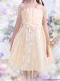 Champagne Spaghetti Straps Little Girl Pageant Dresses with Waistband and Hand Made Flower