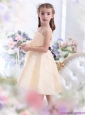 Home >  Special Occasion Dresses >  Little Girl Pageant Dresses > Champagne Spaghetti Straps Little Girl Pageant Dresses with Waistband and Hand Made Flower