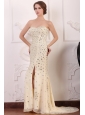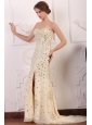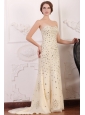Champagne Sweetheart Column Court Train Rhinestone and Silt Prom Dress