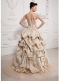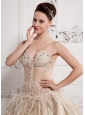 Champagne Sweetheart Lace and Beading Wedding Dress With Taffeta and Organza