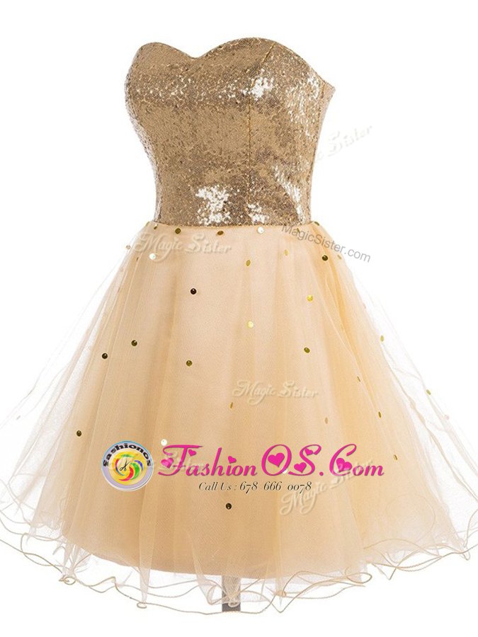 Home >  Prom Dresses >  Perfect Prom Dresses > Champagne Sweetheart Neckline Sequins Homecoming Dress Sleeveless Lace Up