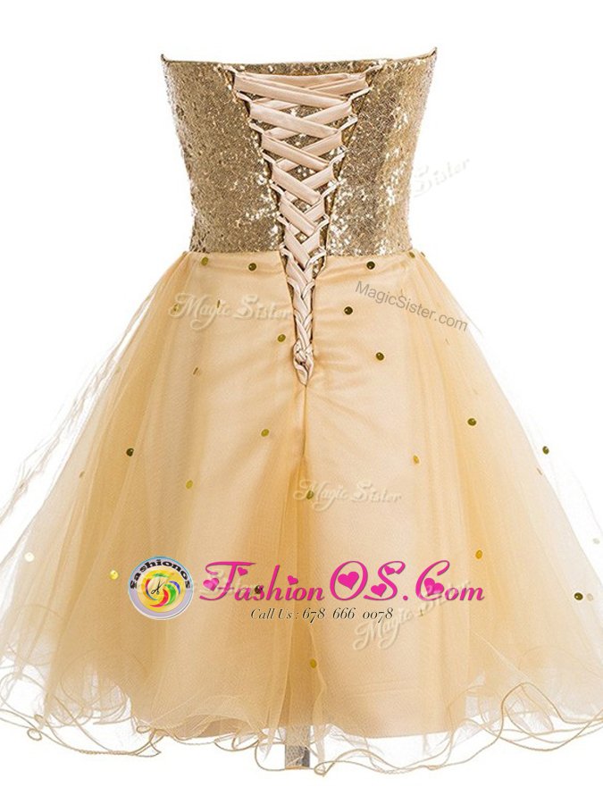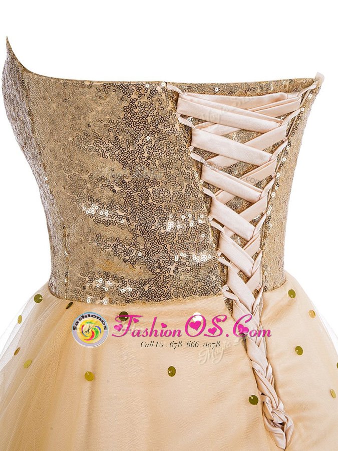 Champagne Sweetheart Neckline Sequins Homecoming Dress Sleeveless Lace Up