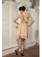 A short gown featuring a trendy one shoulder design with soft feminine chiffon fabric that will look amazing as you waltz into prom! It features a strapless bodice and a lovely sweetheart neckline that is heavily highlighted by an exquisite embroidered diagonal strap.The ruched embellishments with a twist around the bust add its charming touch. The skirt is mid-thigh length and has a beautiful shape, layers of lightweight fabric put into its design, creating a lovely effect. So pretty!