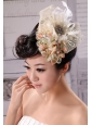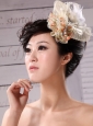Champagne Tulle and Chiffon Fascinators With Imitation Pearls