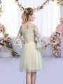 Champagne Tulle Lace Up Quinceanera Court Dresses 3 4 Length Sleeve Mini Length Lace and Bowknot