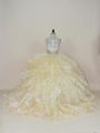 Champagne Vestidos de Quinceanera Sweet 16 and Quinceanera with Beading and Lace High-neck Sleeveless Brush Train Zipper