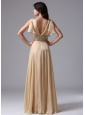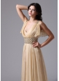 Champagne V-neck In Alhambra California and Beaded Decorate Waist For Prom Dress