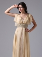 Home >  Prom Dresses >  Elegant Prom Dresses > Champagne V-neck In Alhambra California and Beaded Decorate Waist For Prom Dress