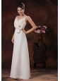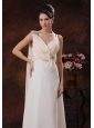 Champagne V-neck Watteat Train Chiffon Prom Dress With Beaded and Bow Decorate In Paradise Valley Arizona