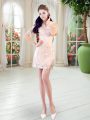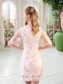Champagne Zipper High-neck Half Sleeves Mini Length Prom Evening Gown Lace