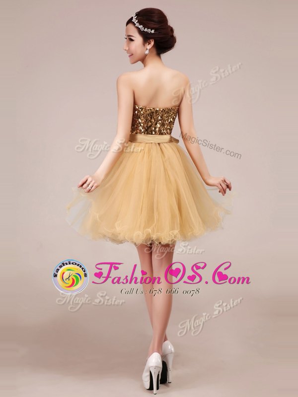 Champagne Zipper Strapless Beading and Sashes|ribbons Cocktail Dresses Chiffon Sleeveless