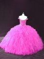 Charming Ball Gowns 15th Birthday Dress Fuchsia Off The Shoulder Tulle Sleeveless Floor Length Lace Up