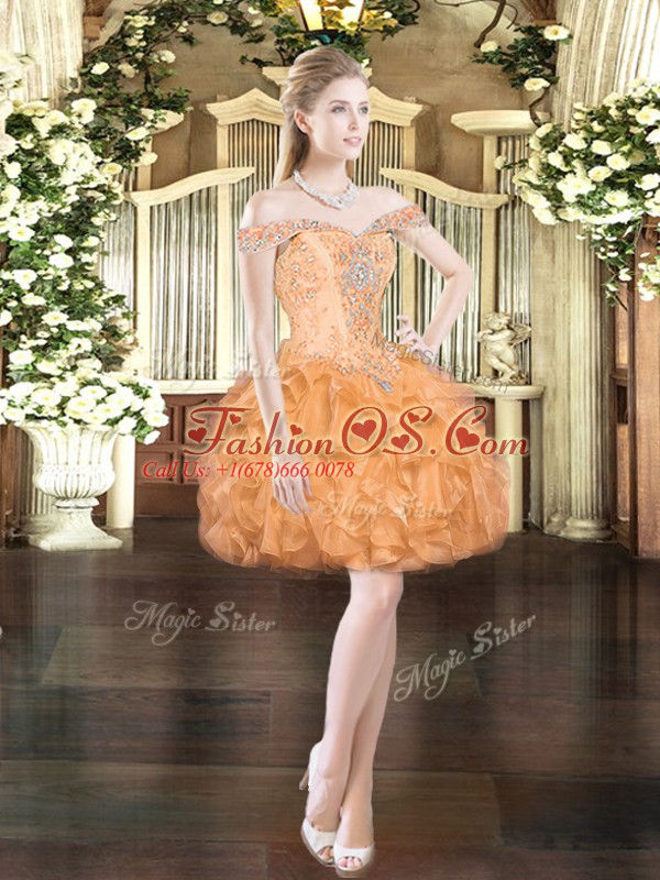 Home >  Prom Dresses >  Fashionable Prom Dresses > Charming Ball Gowns Orange Red Off The Shoulder Organza Sleeveless Mini Length Lace Up