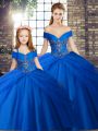 Charming Beading and Pick Ups Ball Gown Prom Dress Royal Blue Lace Up Sleeveless Brush Train