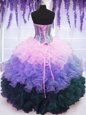 Charming Floor Length Blue And White Quinceanera Gowns Sweetheart Sleeveless Lace Up