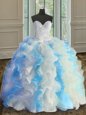 Home >  Quinceanera Dresses >  Fast Delivery Quinceanera Dresses > Charming Floor Length Blue And White Quinceanera Gowns Sweetheart Sleeveless Lace Up