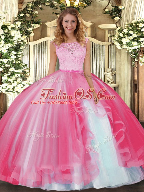 Charming Floor Length Hot Pink Quinceanera Dresses Scoop Sleeveless Clasp Handle