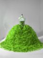 Charming Green Vestidos de Quinceanera Halter Top Sleeveless Court Train Lace Up