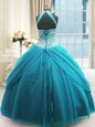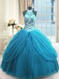 Charming High-neck Sleeveless Lace Up 15th Birthday Dress Baby Blue Tulle