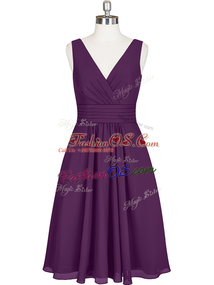 Charming Knee Length Zipper Dress for Prom Purple for Prom and Party and Military Ball with Pleated