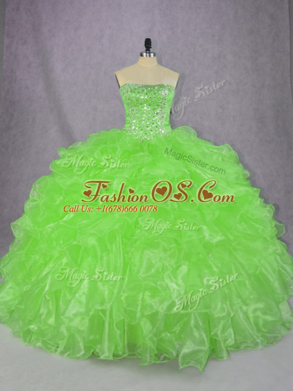 Charming Lace Up Strapless Beading and Ruffles Sweet 16 Dresses Organza Sleeveless