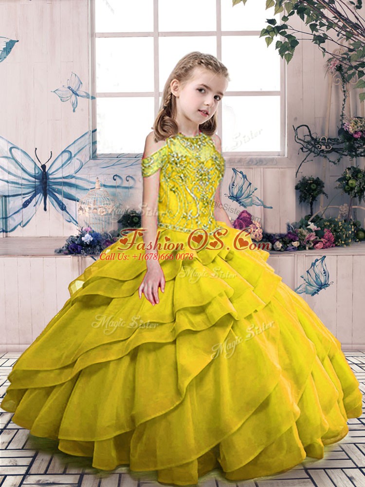 Charming Olive Green High-neck Side Zipper Beading and Ruffled Layers Kids Formal Wear Sleeveless