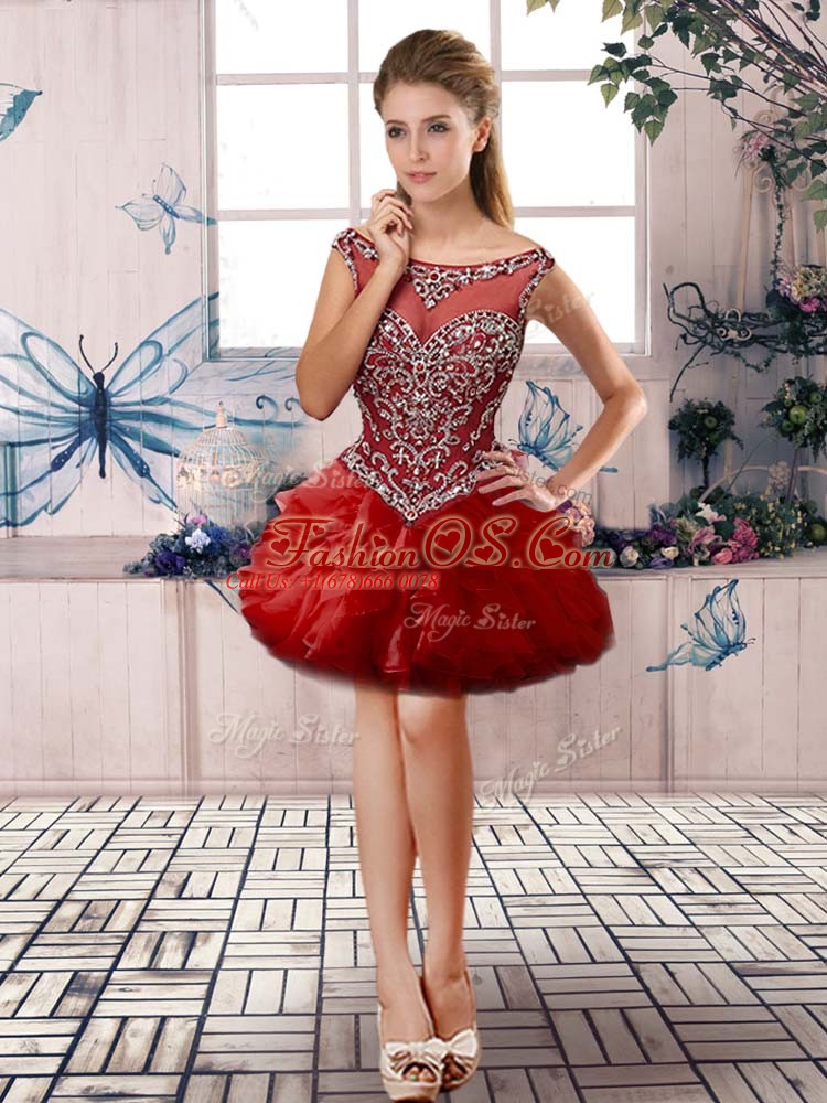 Charming Organza Scoop Sleeveless Zipper Beading and Ruffles Homecoming Dress in Red
