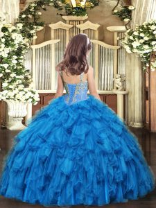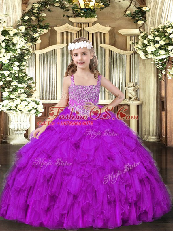 Charming Purple Straps Neckline Beading and Ruffles Little Girls Pageant Dress Wholesale Sleeveless Lace Up