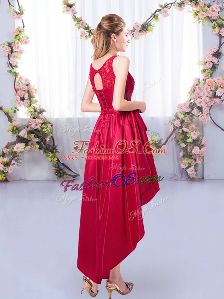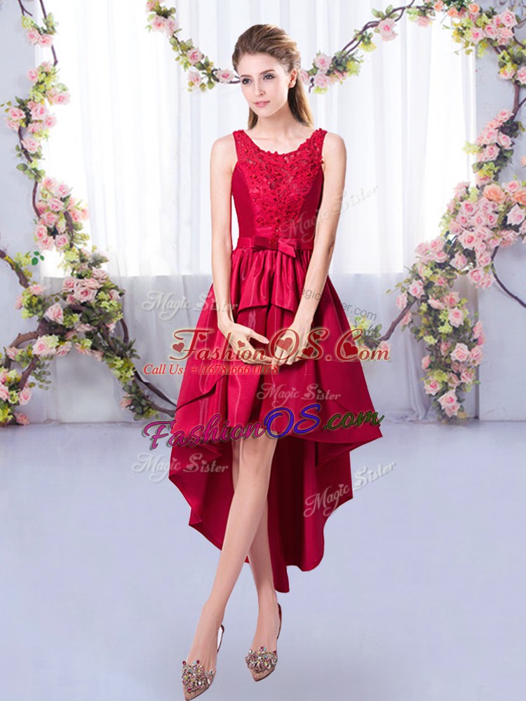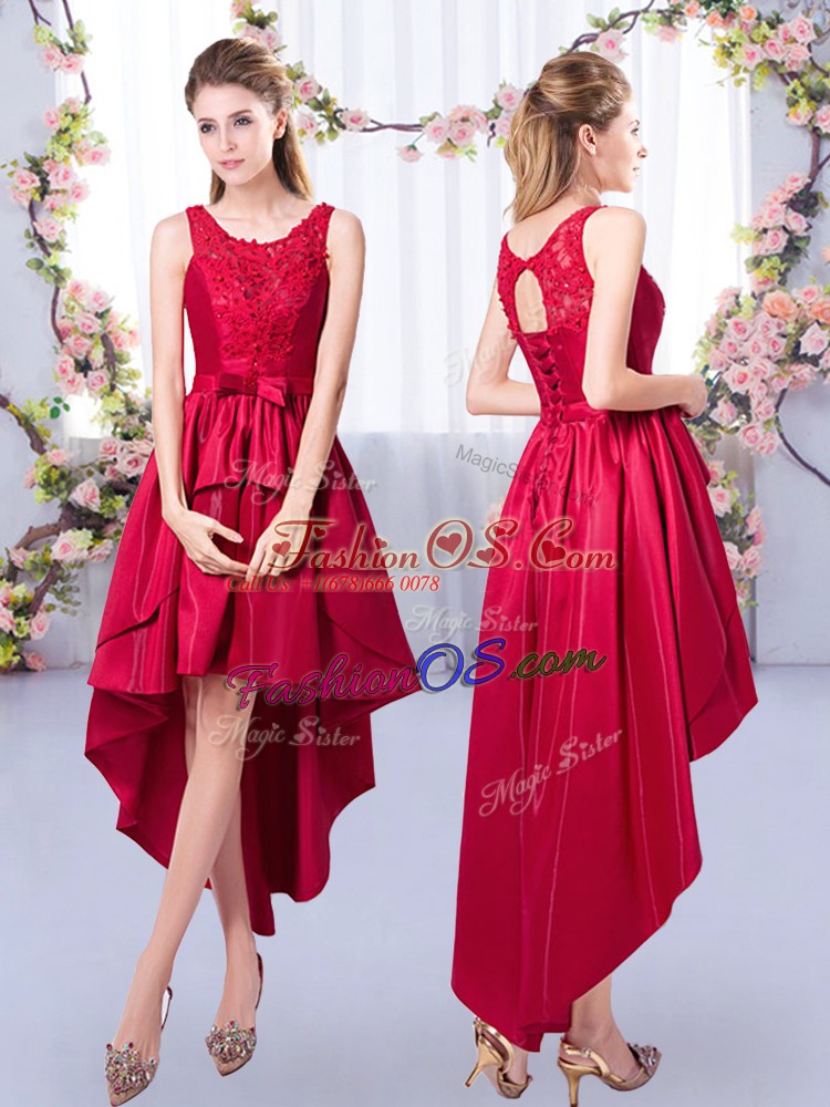 Charming Red Bridesmaid Dress Prom and Party and Wedding Party with Appliques Scoop Sleeveless Lace Up