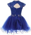 Home >  Special Occasion Dresses >  Cheap Flower Girl Dresses > Charming Scoop Cap Sleeves Mini Length Beading and Lace Zipper Flower Girl Dress with Blue