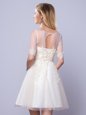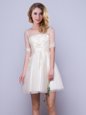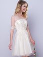 Charming Scoop Half Sleeves Lace Up Bridesmaid Gown Champagne Tulle