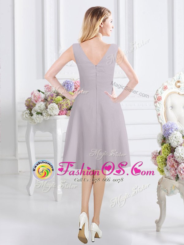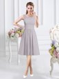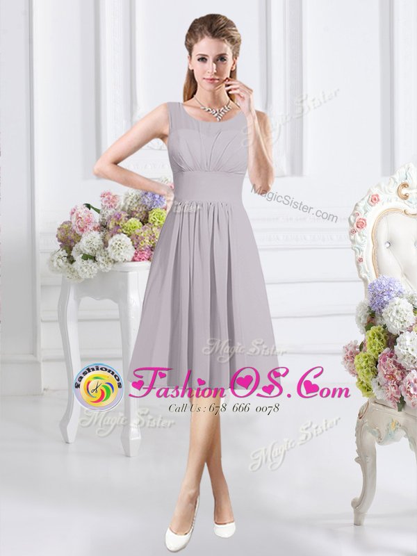 Charming Scoop Sleeveless Knee Length Ruching Zipper Wedding Party Dress with Grey