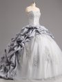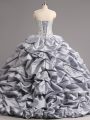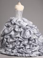 Charming Sleeveless Taffeta and Tulle Brush Train Lace Up 15 Quinceanera Dress in Silver with Beading and Appliques and Pick Ups