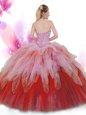 Charming Tulle High-neck Sleeveless Lace Up Beading and Ruffles Ball Gown Prom Dress in Apple Green