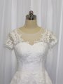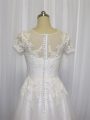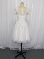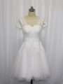 Charming White Short Sleeves Mini Length Lace Zipper Wedding Dresses