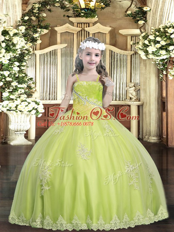 Charming Yellow Green Sleeveless Appliques and Sequins Floor Length Pageant Dress Toddler