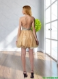 Cheap 2015 Beading Gold Backless V Neck Prom Dress