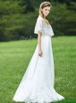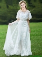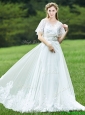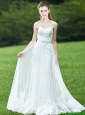 Cheap A Line Applique White  Prom Dresses with Brush Train