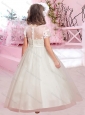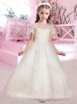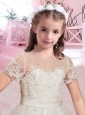 Cheap A Line Scoop Applique and Beaded Flower Girl Dress with Short Sleeves