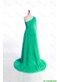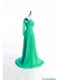 Cheap Affordable Appliques Green Long Prom Dress with Sweep Train for 2016