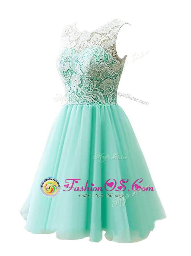 Cheap A-line Homecoming Dress Apple Green Scoop Tulle Sleeveless Knee Length Clasp Handle