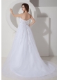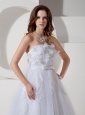 Cheap A-line / Princess Strapless Low Cost Wedding Dress Tulle Embroidery Chapel Train