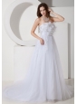 Home >  Wedding Dresses >  Low Cost Wedding Dresses > Cheap A-line / Princess Strapless Low Cost Wedding Dress Tulle Embroidery Chapel Train