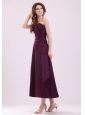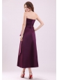Cheap A-Line Strapless  Ankle-length Purple Ruching Prom Dress