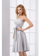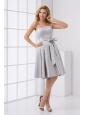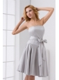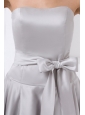 Cheap A-line Strapless Grey Mini-length Prom Dress with Bowknot