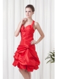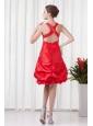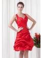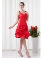 Cheap A-line Straps Knee-length Pick-ups Criss Cross Red Prom Dress