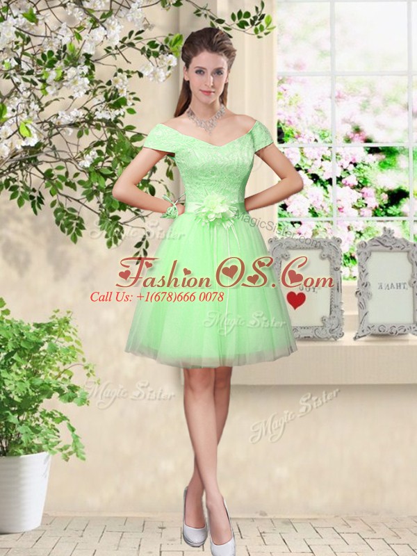 Cheap Apple Green Lace Up V-neck Lace and Belt Bridesmaids Dress Tulle Cap Sleeves