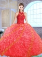 Cheap Appliques and Ruffles Quinceanera Gowns with High Neck