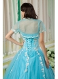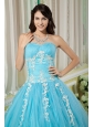 Cheap Aqua Ball Gown 15 Quinceanera Dress Sweetheart Tulle Appliques Floor-length